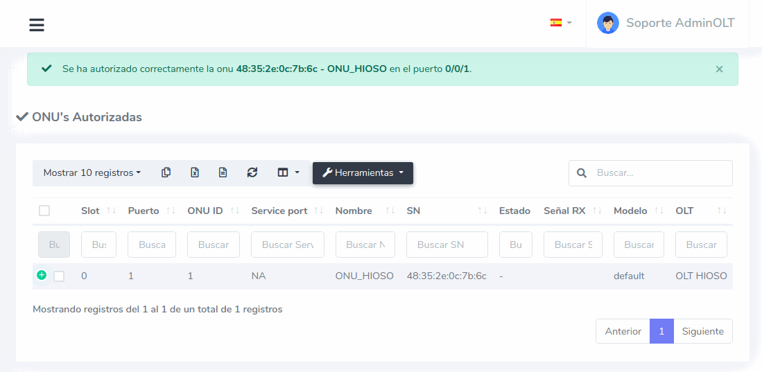 Al conectar un equipo a la OLT, este debe ser autorizado para poder establecer una conexión, a continuación se explican los pasos a seguir para autorizar Onu's en OLT's Hioso EPON desde AdminOLT.
