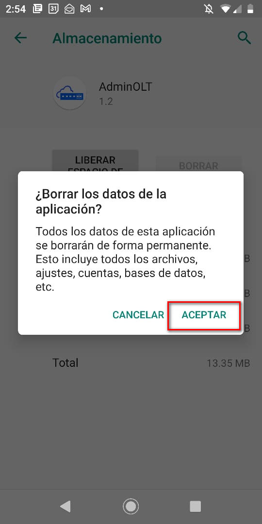 4En caso de aparecen un mensaje de confirmación le diremos que estamos seguros de eliminar los registros de la app.