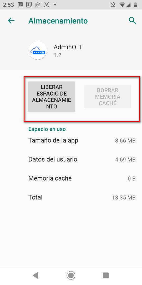 3Vamos a Liberar espacio de almacenamiento y Eliminar memoria caché para borrar el registro de la cuenta anterior.