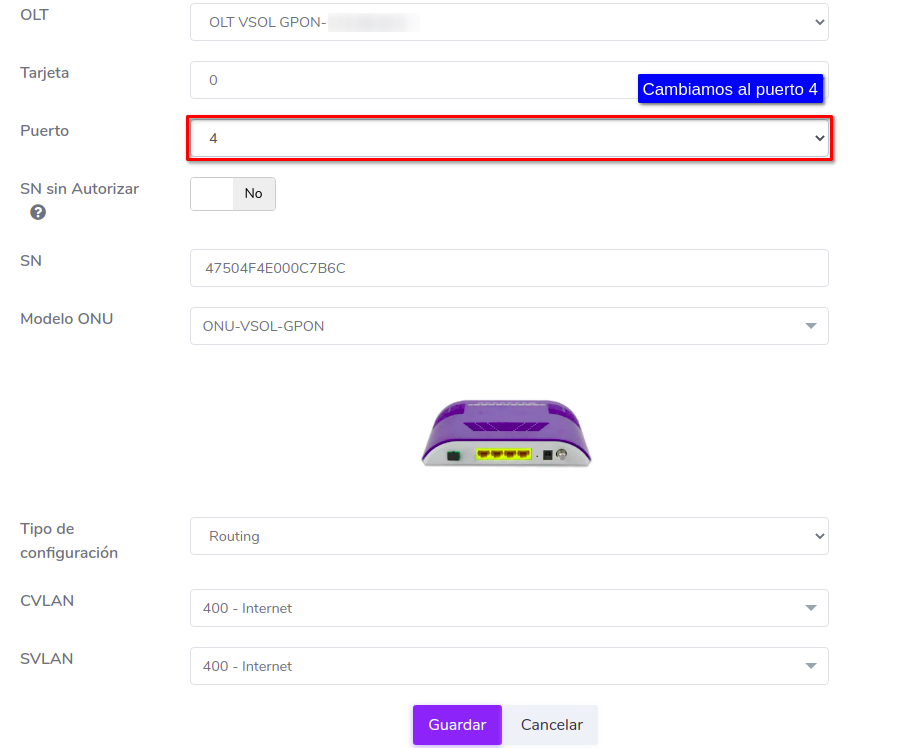 Para editar el Puerto de una ONU en la OLT existen 2 formas de hacerlo:
