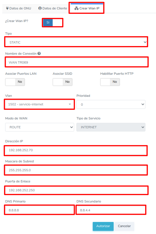 Podemos agregar WAN IP TR069 desde AdminOLT, con la novedad de que se puede agregar una WAN IPv6, de forma que esta configuración resiste a los reinicios y reseteos de la ONU.