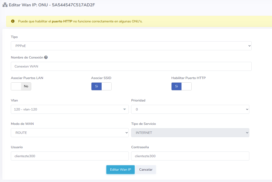 Pasos para crear Wan IP desde Onu's autorizadas.
