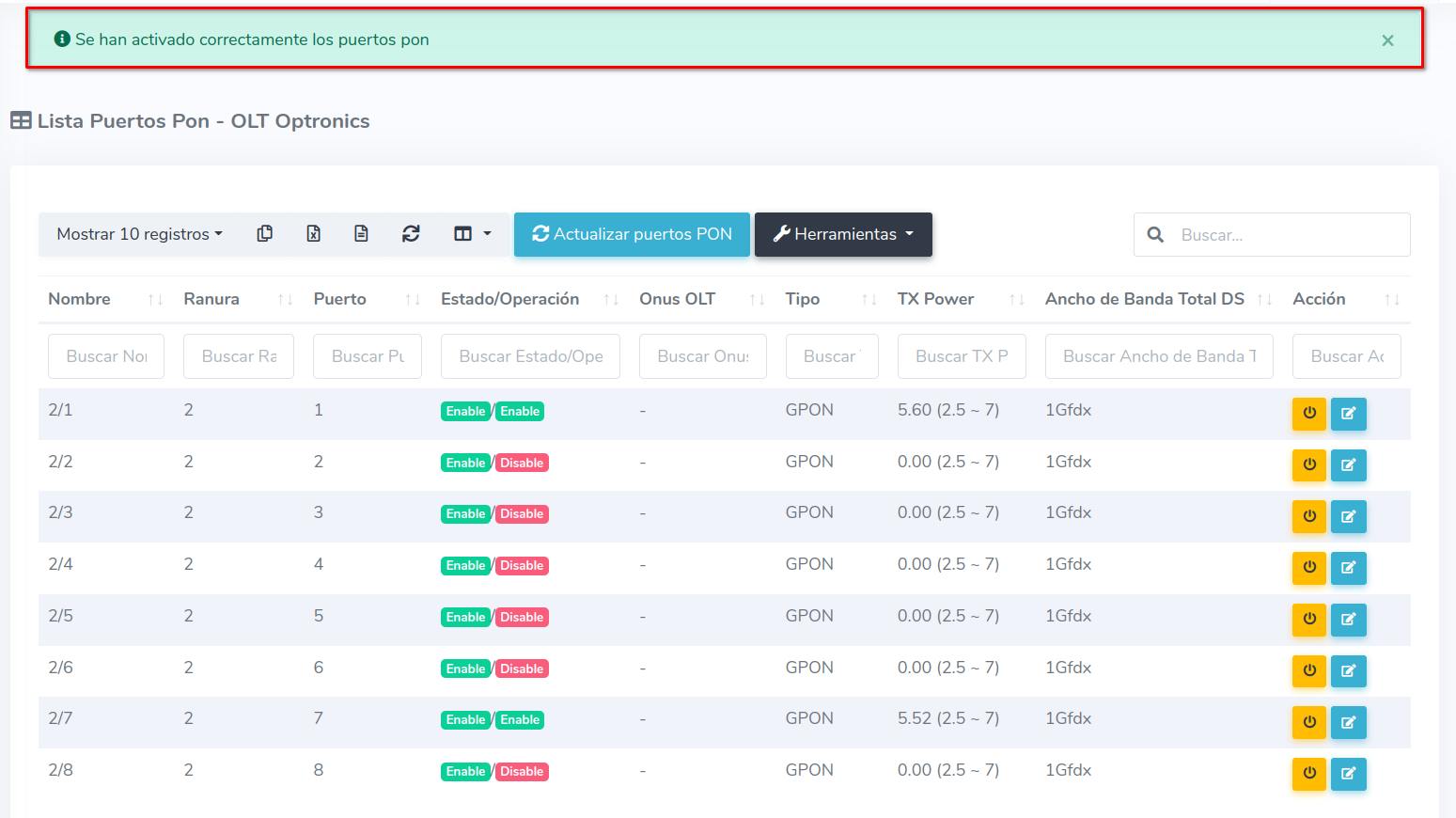 2 Estando en esta vista seleccionamos la opción Activar todos los puertos PON.