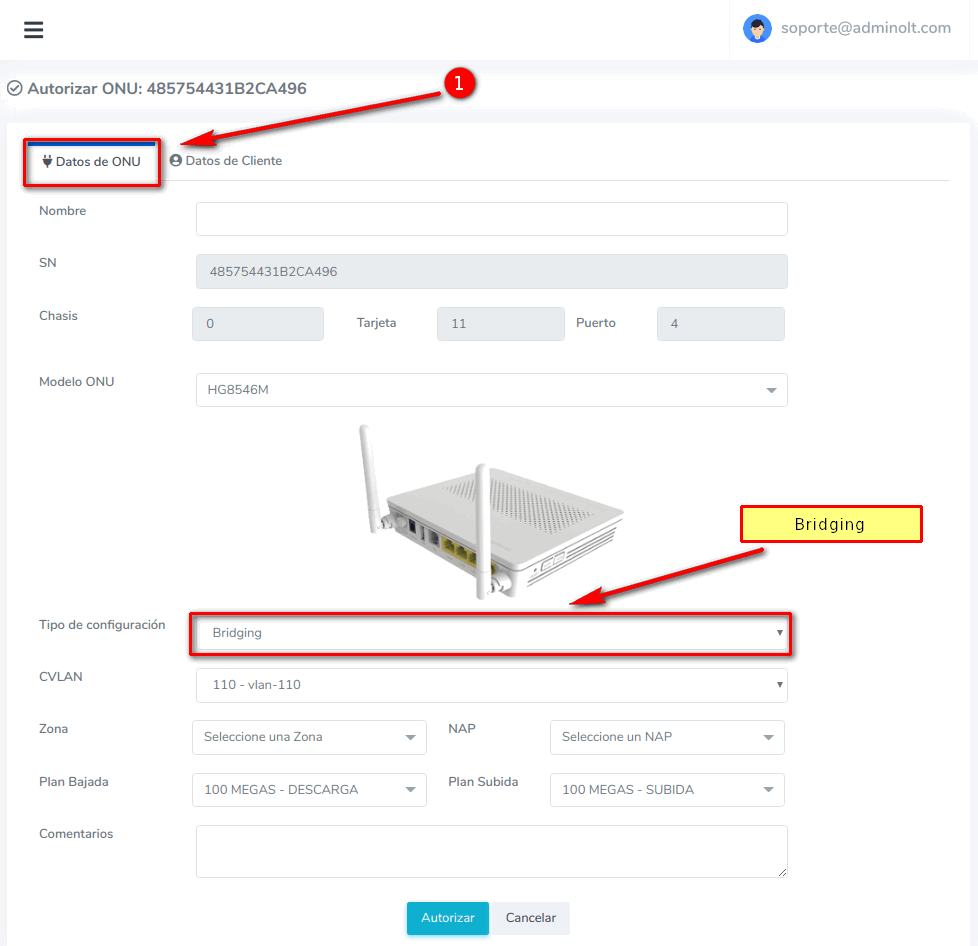 Para este paso nos podemos seguir las instrucciones del manual Autorizar ONU.