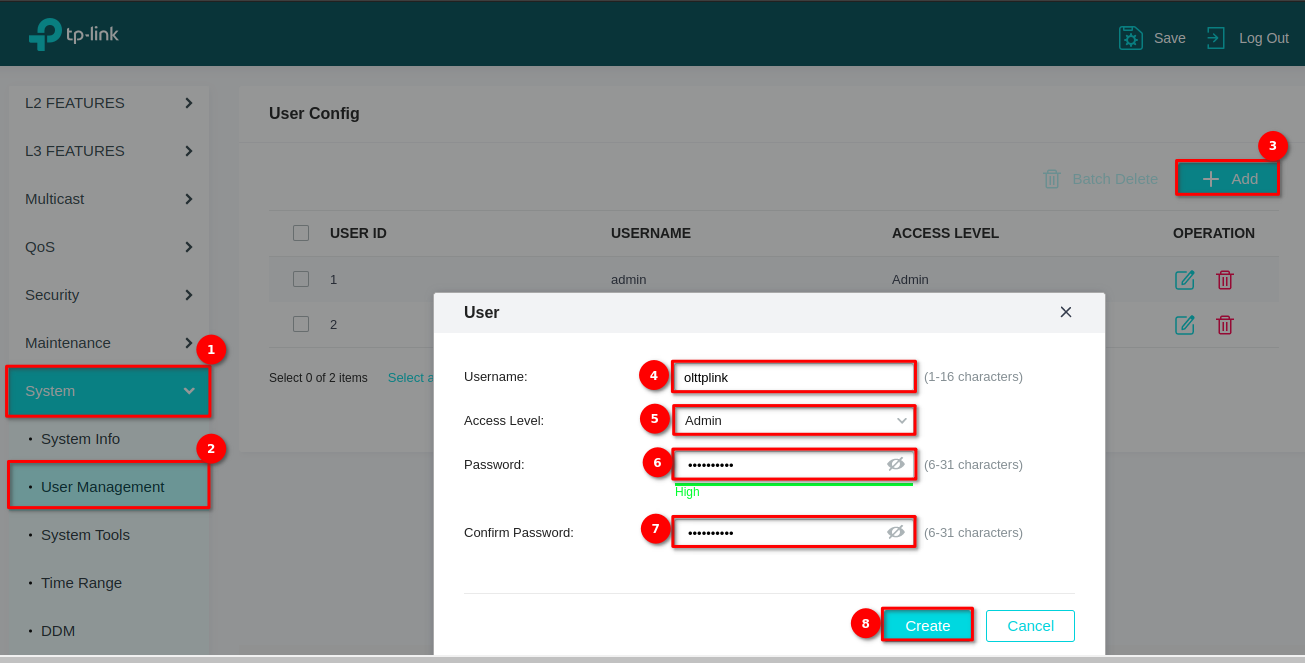 Crear usuario administrador TP-Link Serie DS-P7001