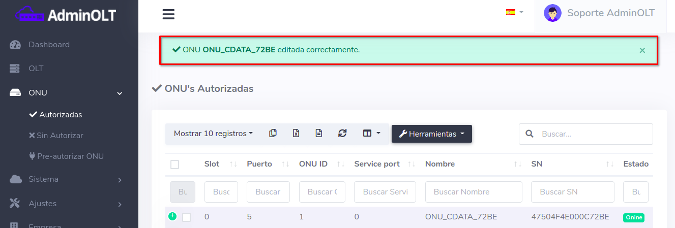 - Editar ONU en AdminOLT desde Lista de ONU's Autorizadas