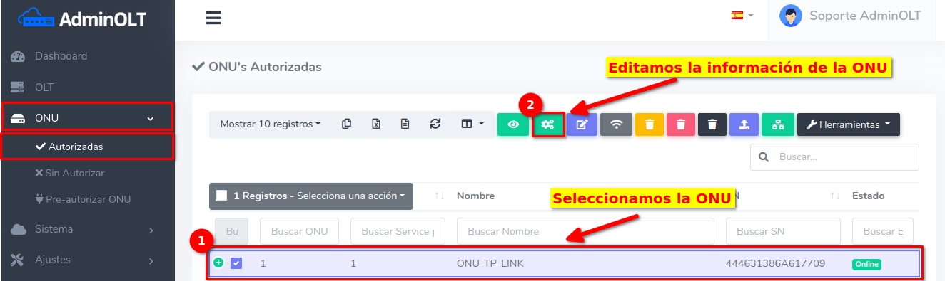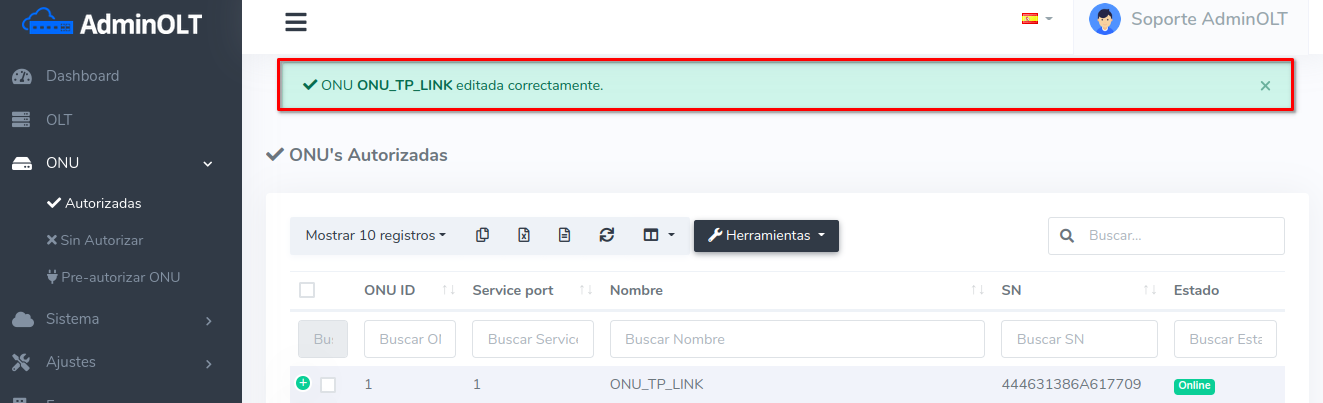 - Editar ONU en AdminOLT desde Lista de ONU's Autorizadas