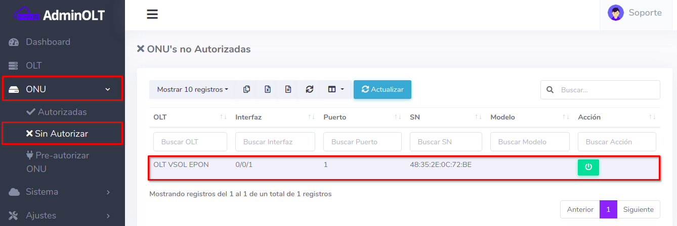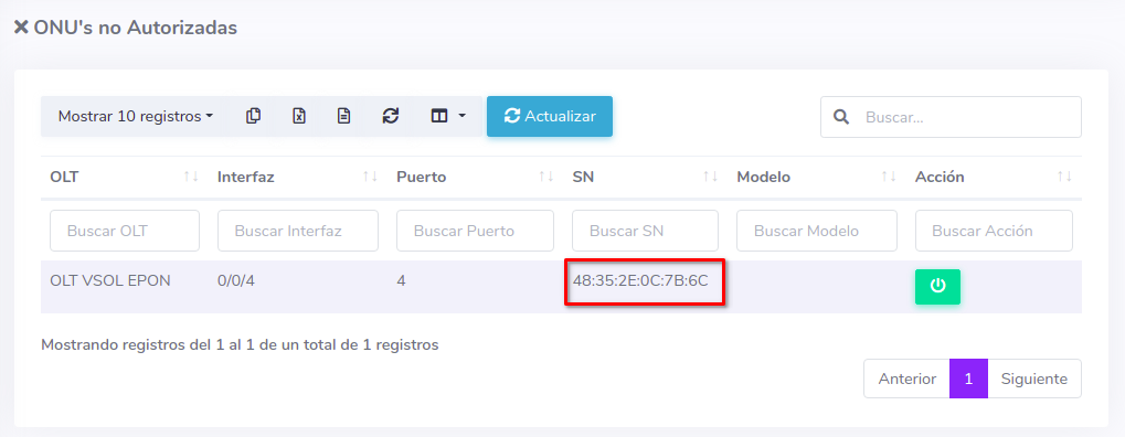 Editar ONU Vsol EPON por Numero de Serie (SN)