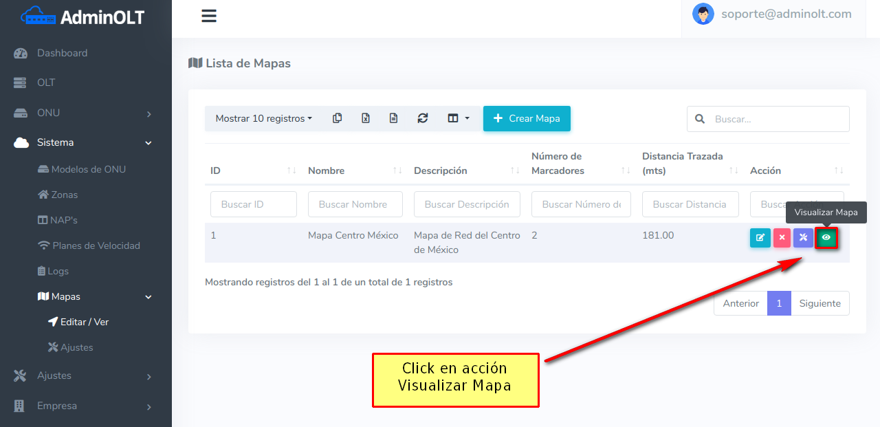 1 Ir a la sección Sistema > Mapas > Editar / Ver > Lista de Mapas