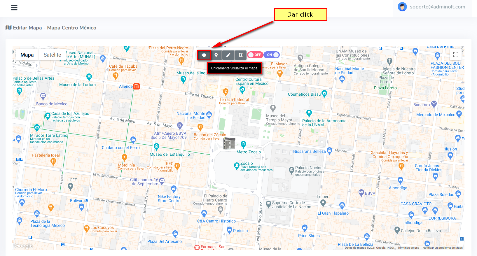 1 Poner en modo para manipular el mapa.